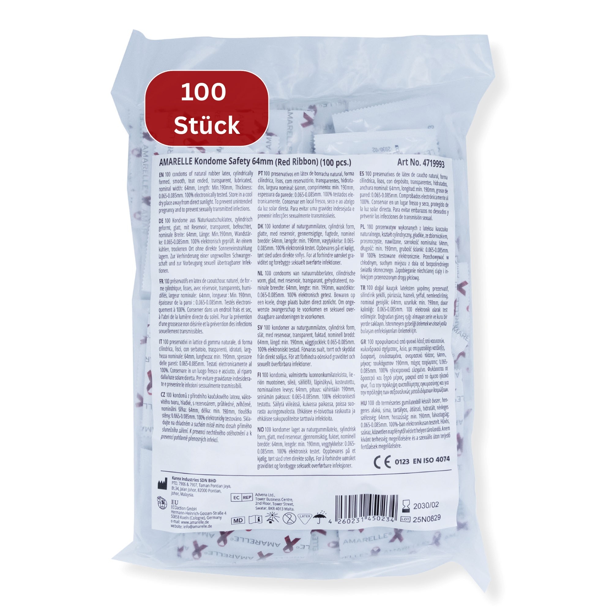 AMARELLE Safety Red Ribbon condooms zijn verkrijgbaar in verschillende breedte-maten voor een optimale pasvorm, zodat je condoom nooit te straks of te ruim is. Amarelle condooms zijn ontwikkeld in samenwerking met aidsdeskundigen in Duitsland en bieden bij correct gebruik effectieve bescherming tegen ongewenste zwangerschap, en tegen hiv/aids en andere seksueel overdraagbare aandoeningen.