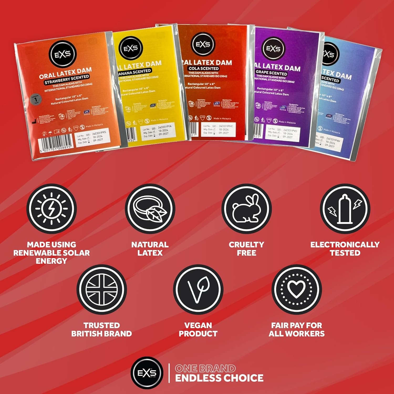 Het Engelse merk EXS maakt het nog leuker door de verschillende kleurtjes en nog lekkerder door het toevoegen van geur. Deze geparfumeerde beflapjes van natuurrubberlatex zijn er in 4 heerlijke varianten: Cola, grapefruit, banaan en aardbei. Bij bestelling ontvang je een compleet assortiment van 4 stuks. Gratis verzending met brievenbuspost.