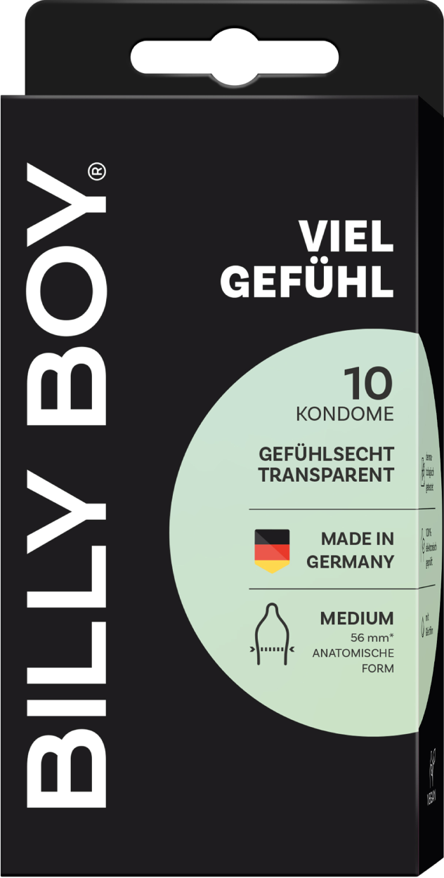 Billy Boy FEEL IT zijn extra dunne condooms van het Duitse kwaliteitsmerk Billy Boy, voor een beter gevoel tijdens het vrijen. Met 56mm nominale breedte zijn deze condooms breder dan andere Billy Boy condooms. Ze zijn tevens anatomisch gevormd voor het beste gevoel, hebben een reservoir zijn voorzien van glijmiddel en een aangename geur.