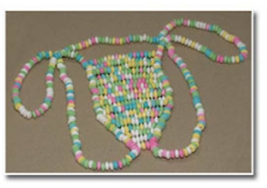Een tanga string gemaakt van snoepkettingen. Trek hem aan en laat hem door je partner opeten!