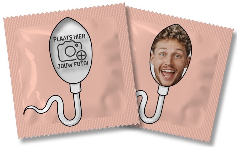 Upload een foto en plaats deze precies in de spermacel. Maak unieke condooms als leuke grap met een knipoog! Gratis, snelle en anonieme verzending, al vanaf 3 stuks!