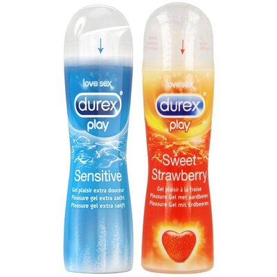 Combinatieaanbieding: de klassieke Durex Sensitive en de smaakvolle Durex Strawberry, beide glijmiddelen tijdelijk samen voor deze zeer scherpe prijs!