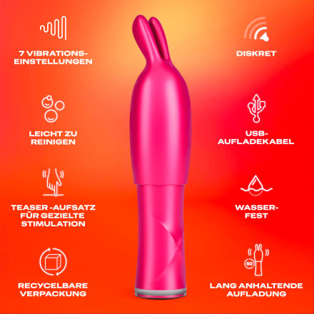 Met 7 vibratiestanden is de Bunny Vibrator Vibe & Tease van Durex het ideale speeltje voor wie eens iets anders wil proberen of lekker op ontdekkingstocht wil gaan. Dit speeltje biedt vele variaties voor genot, die je zowel alleen of met je partner kunt ervaren. Onder de douche of in bed, waar dan ook, de Vibe & Tease Vibrator is ontworpen om je te laten genieten!