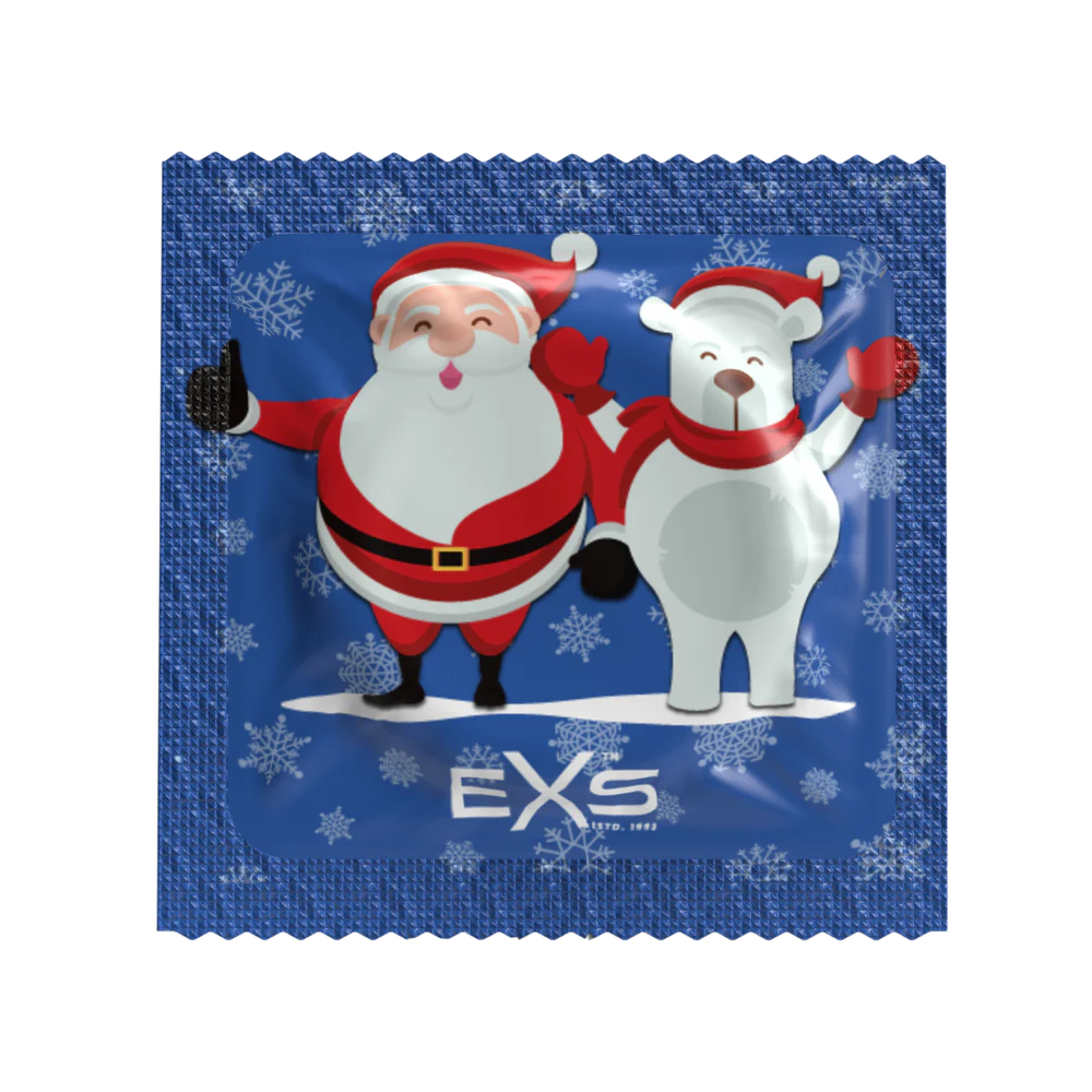 EXS staat bekend om hun creatieve condooms, dus natuurlijk pakken ze uit met Kerstmis. De Kerstman, samen met een sneeuwpop wensen jou fijne feestdagen. En dat geeft altijd een fijn gevoel, zo net voordat je een condoom wil gaan gebruiken. En het leuke is, je kunt deze condooms zelf gebruiken, als kerstcadeau onder de boom leggen, maar natuurlijk ook in de boom hangen. Een haakje erom en je hebt een heel leuk alternatief voor de kerstballen. Merry x-mas!