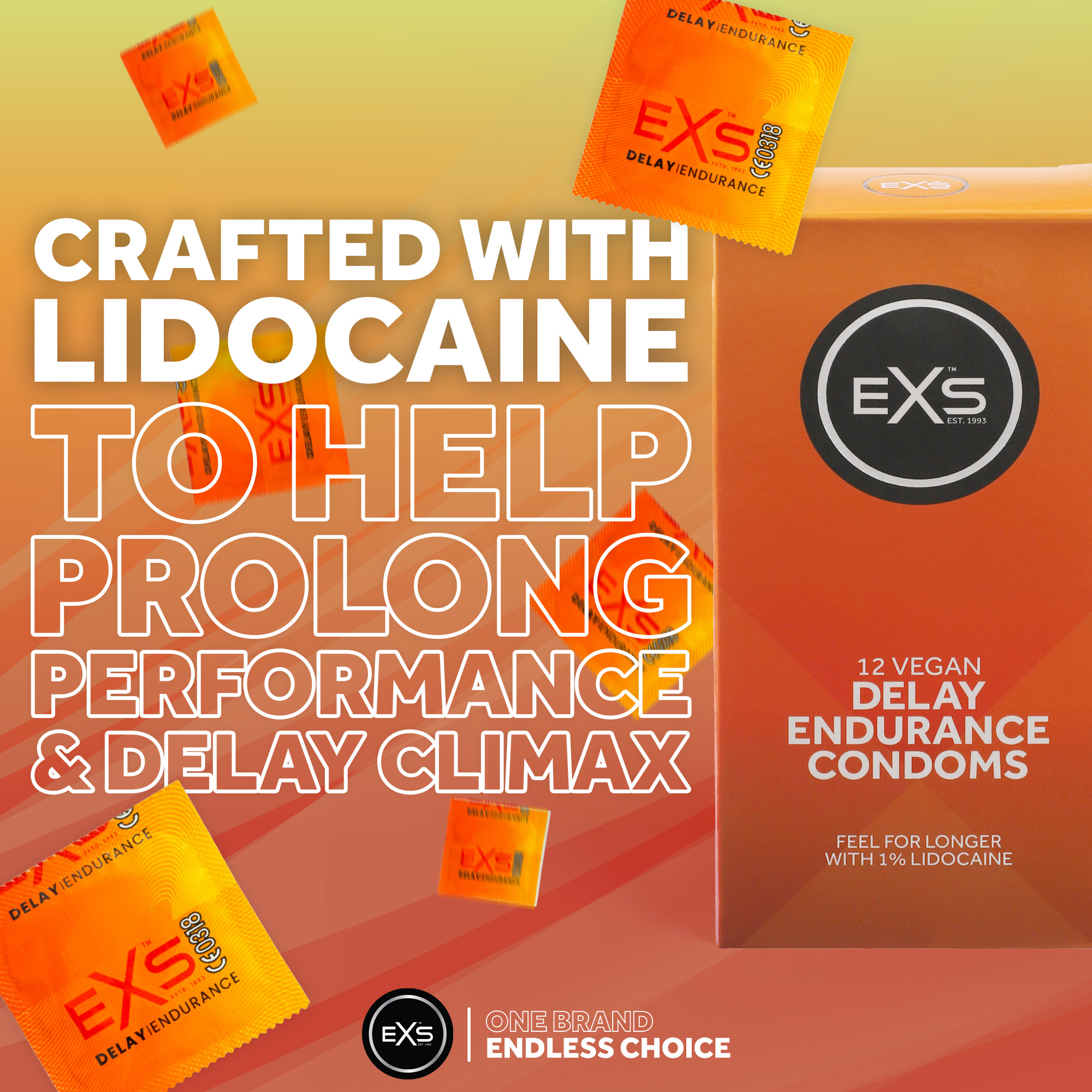 EXS Delay Endurance condooms zijn vervaardigd uit natuurlijk rubber latex, hebben een reservoir en een niet zaaddodend glijmiddel op siliconenbasis. Deze condooms werden eerder aangeboden als EXS Long Love condooms.
