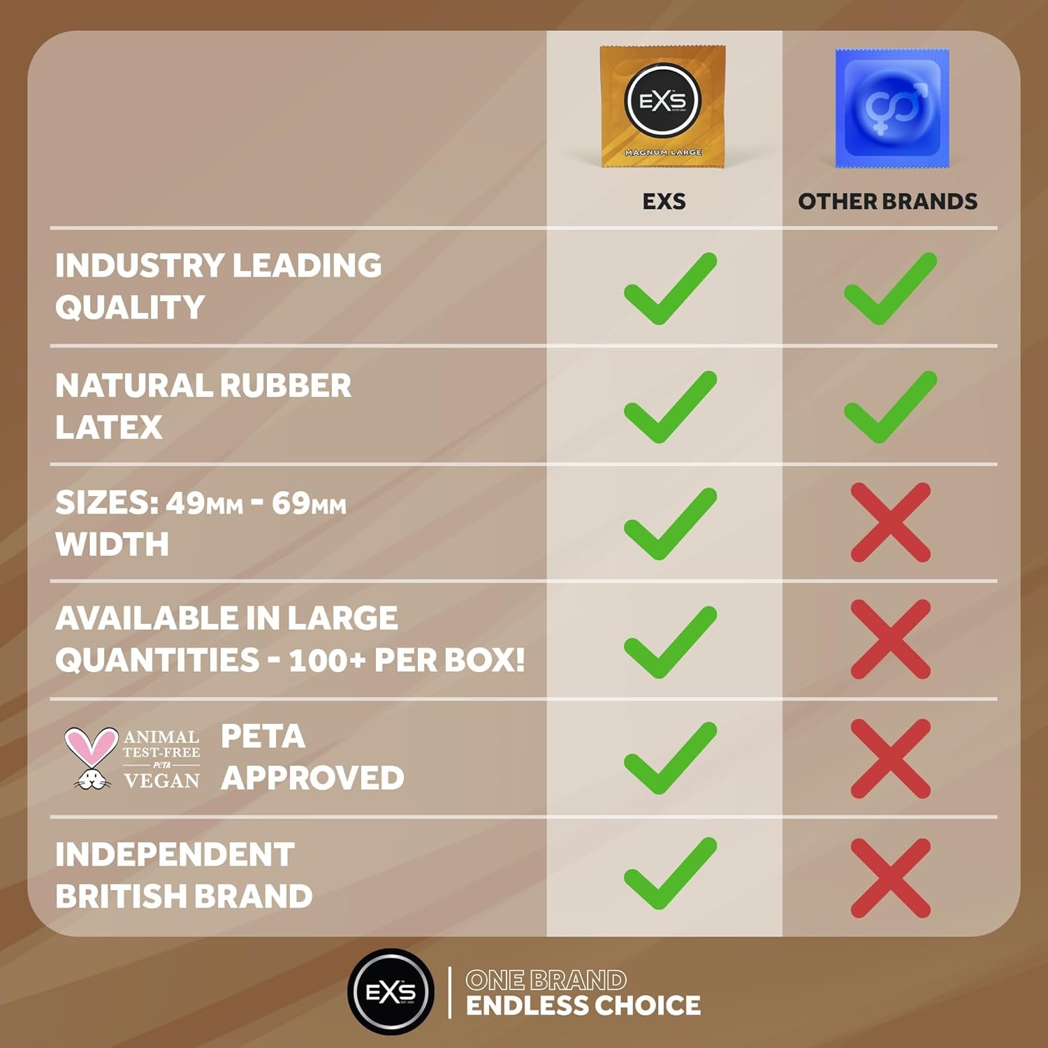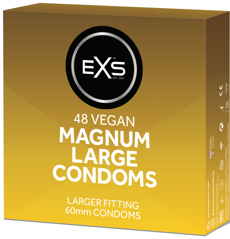 EXS Magnum Large condooms zijn bredere, ruimere condooms met een nominale breedte van 60mm en een lengte van 190mm.