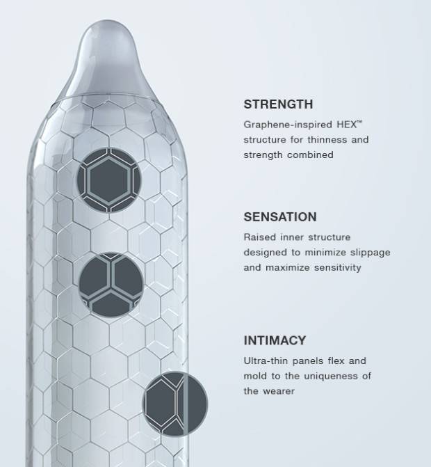 Er is een reden waarom honingraten zeshoekig zijn: ze zijn sterk en symmetrisch. Lelo, het merk dat bekend is van hoogwaardige design toys, besteedde 7 jaar aan onderzoek en testen. Het resultaat is een ultradun (45 micron) condoom dat vergeleken met andere condooms veel sterker is.