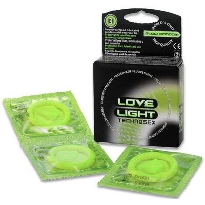 Love Light TechnoSex condooms zijn enige lichtgevende condooms welke óók aan de strenge eisen voldoen om een CE-markering te dragen. Deze lichtgevende fun-condooms beschermen dus óók tegen SOA en ongewenste zwangerschap. Voor gebruik kun je het lichtgevende condoom in de verpakking 30 seconden in het licht houden. De top zal dan licht geven en de rest van het condoom zodra je het afrolt. Voor het beste resultaat houd je het licht aan tijdens het afrollen van het condoom en doe je 30 seconden later het licht uit. Love Light lichtgevende condooms zullen gedurende 15 minuten helder licht geven en kunnen nog uren 'nagloeien'. Indien je het weer in het licht houdt zal het opnieuw licht gaan geven, maar onthoud: gebruik een condoom nooit opnieuw!