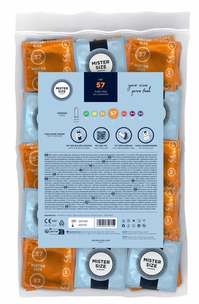 MISTER SIZE bezorgt je een heel nieuwe gevoel tijdens de seks terwijl het tegelijkertijd optimale bescherming biedt. Alle MISTER SIZE condooms voldoen aan de DIN standaard EN ISO 4074:2002 en zijn zorgvuldig getest. Een condoom met optimale veiligheid schept vertrouwen en biedt jullie beiden de mogelijkheid volledig te ontspannen en te genieten van jullie liefdesspel. Let op: er zijn verpakkingen met de tekst EXTRA FINE en nieuwere verpakkingen met de tekst PURE FEEL. De condooms in deze verpakkingen zijn identiek.