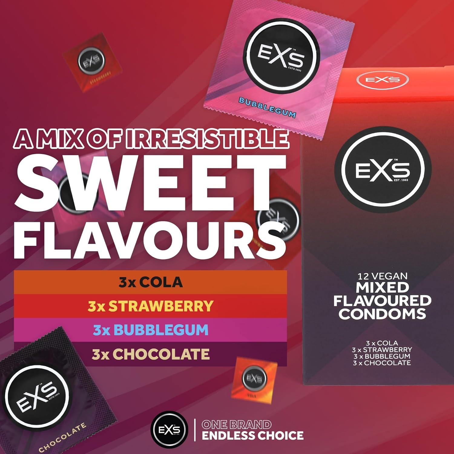 EXS Mixed Flavoured Condooms zijn ontworpen om je verbeelding te stimuleren en je zintuigen te prikkelen tijdens het vrijen en voorspel. Verleid je partner met een omhullend aroma en een zoete, intense smaak.