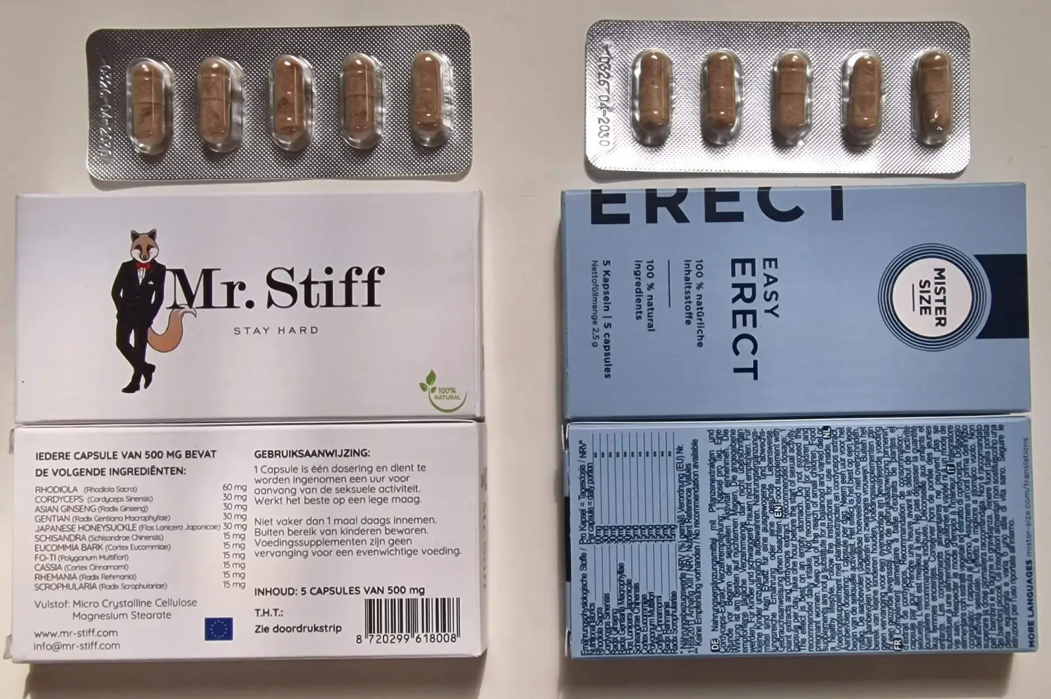 Zowel de libido verhogende pillen als het shotje van Mr Stiff zijn gemaakt van 100% natuurlijke kruiden. Gebruik de shot ongeveer 30 tot 60 minuten en de capsules ongeveer 60 minuten voor aanvang van seksuele activiteit, het liefst op een niet te volle maag. De producten kunnen samen ingenomen worden mits je niet hyper gevoelig bent. Wij raden daarom aan om eerst 1 van de 2 te nemen en als dat niet goed werkt kunnen beide producten gebruikt worden.