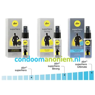 Pjur Superhero Strong is de sterker geconcentreerde vertragingsspray van Pjur. Voor iedereen die langer wil genieten van het seksueel genot is er Pjur Superhero Spray, een speciaal ontwikkelde intieme spray voor mannen. De verfijnde afstemming van ingrediënten zorgt voor langer plezier en voorkomt vervroegde zaadlozing.