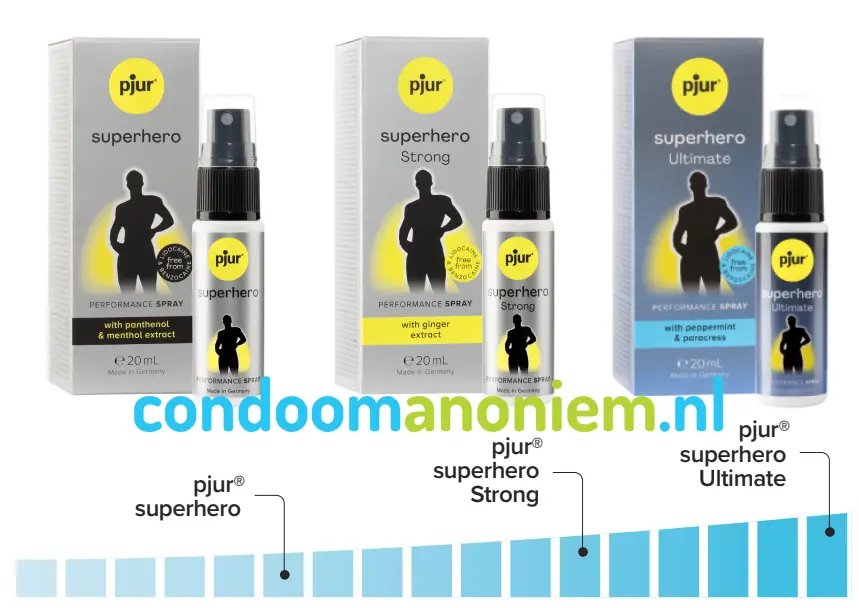 Deze verpakking bevat 20ml Pjur Superhero Strong Performance Spray en wordt gratis en discreet in een luchtkussen-envelop verzonden met het doosje platgevouwen (past door de brievenbus).