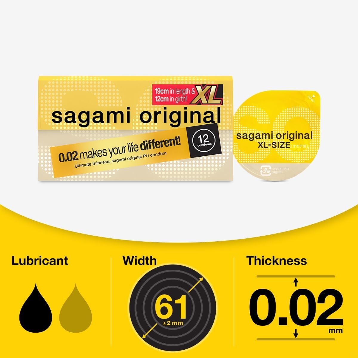Sagami Original 0.02 XL-size (2e generatie) condooms zijn slechts 0,02 mm dik en latexvrij. Exact hetzelfde condoom als Sagami Original maar met een nominale breedte van 61mm nog ruimer en daarmee geschikt voor de penis van +/- 12cm omtrek.