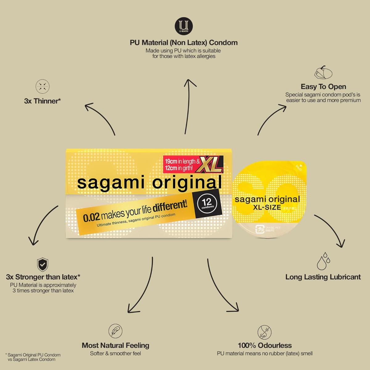 Het Japanse merk Sagami produceert al sinds 1991 latexvrije condooms. In 1998 heeft Sagami een condoom van speciaal polyurethaan ontwikkeld 'Sagami Original' en in 2005 kwam 'Sagami Original 0.02' op de markt. In 2011 werd dat 'Sagami Original 0.02 (2nd generation). Vergeleken met de eerste generatie is deze nieuwe (tweede) generatie dunner en zachter en een stap richting het maken van het nog dunnere 0.01 condoom. Dankzij het gebruik van PU-materiaal is het onschadelijk voor het menselijk lichaam, ruikt het niet naar latex en veroorzaakt het geen latexallergie.