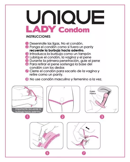 Het UNIQ Lady condom is eigenlijk een condoomslip; een geïntegreerd latexvrij vrouwencondoom in een slipje. Net als bij het Uniq Air Female condoom is dit condoom voorzien van een unieke AirBubble. Daar waar andere vrouwencondooms een ring hebben om het condoom in de vagina binnen te brengen en op zijn plek te houden, heeft dit Lady Condom een luchtbel (air bubbel).