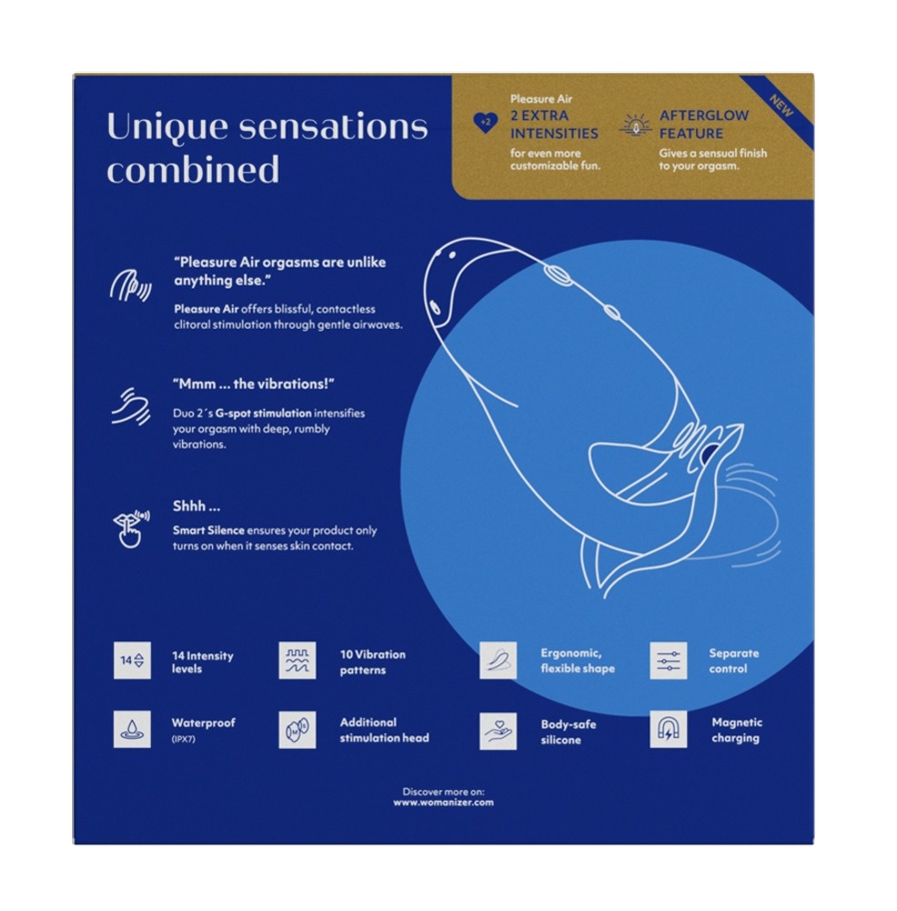 De Womanizer DUO 2 is de vernieuwde versie van het populaire duo-speeltje van Womanizer. Dit innovatieve model combineert zachte luchtimpulsen op de clitoris met gerichte inwendige vibraties, waardoor je kunt genieten van een intens samenspel van prikkels voor een diepe, ontspannende ervaring.